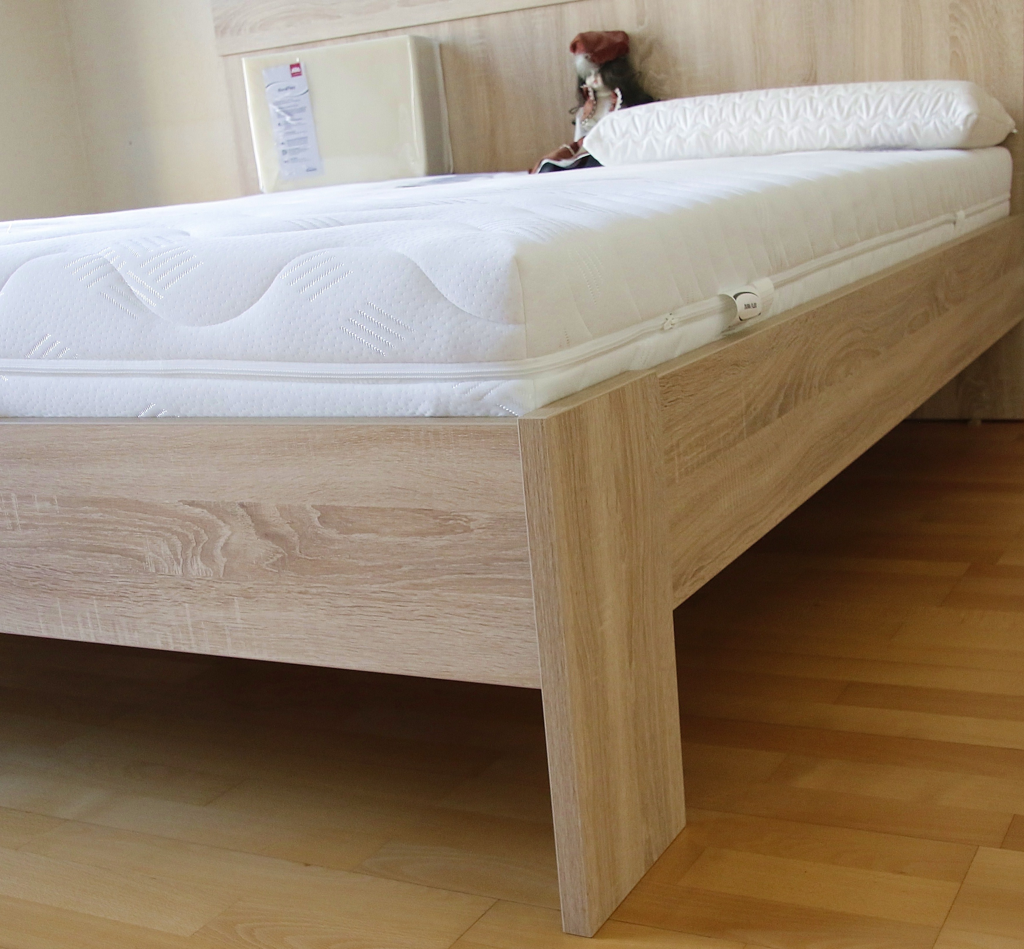 Jede Liegefläche möglich. Erhältlich ebenso in Dekor Eiche hell/dunkel Esche, Buche, Ahorn, Birke, Nuß und Fichte, als auch in Eiche, Buche Ahorn und Nuß furniert. Weitere Dekorvarianten in uni Weiß, Sand, Creme oder Frontvarianten in lackiert auf Wunsch fertigbar.