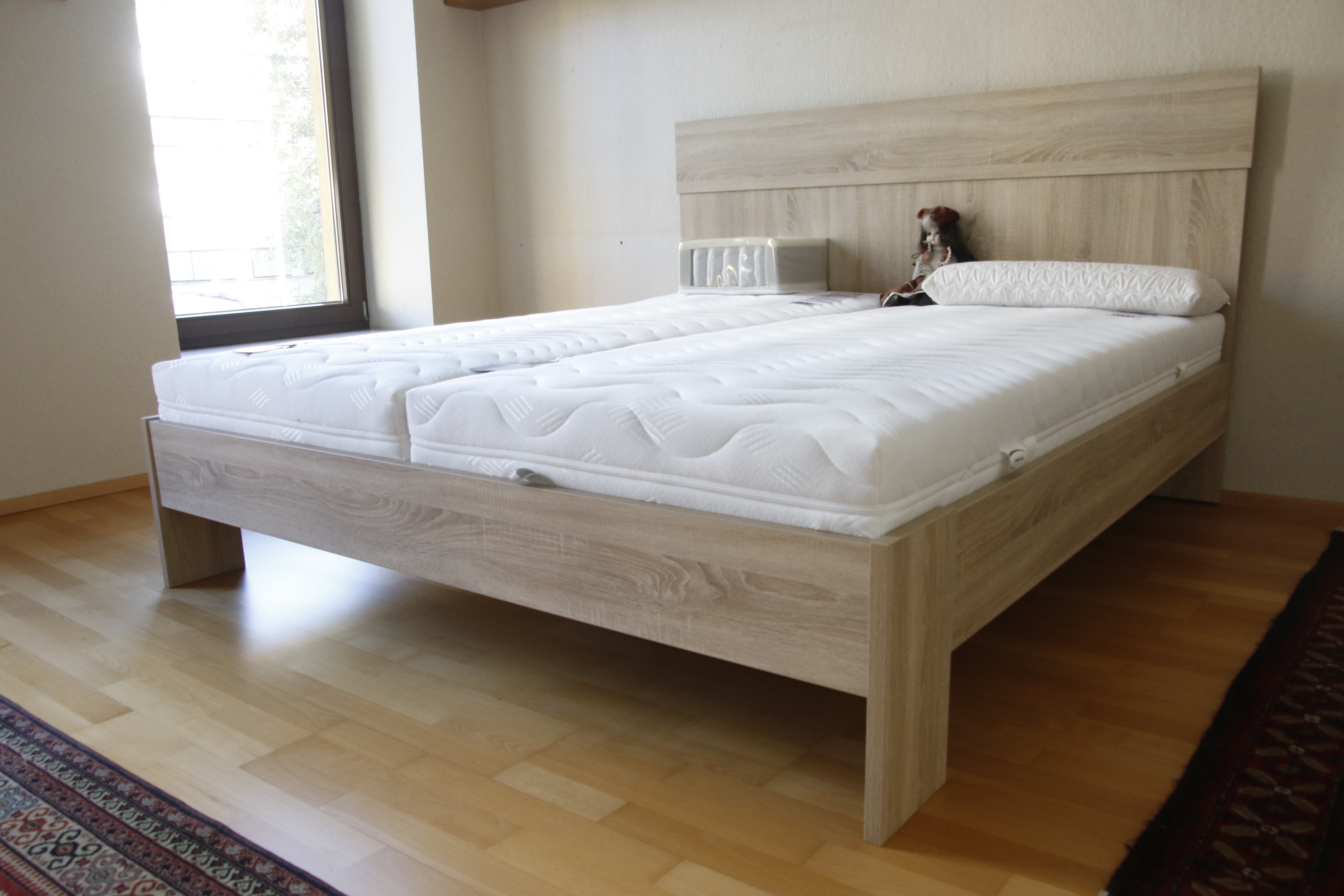 Bettanlage mit Liegefläche 180x200cm, Bettkasten in Komforthöhe, Kopfhaupt hochgezogen mit Abstufung.