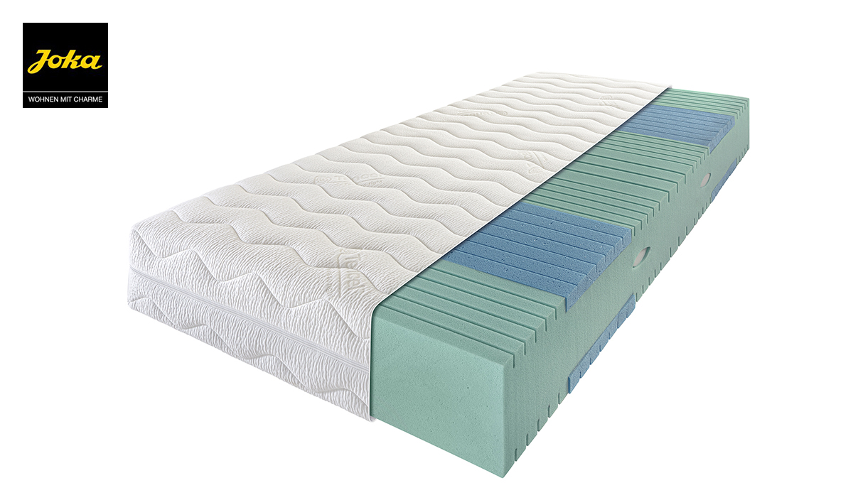Ausführung „Fest“ oder „Mittelfest“ lieferbar, Höhe ca. 21cm für individuellen Liegekomfort. Innen 7-Zonen mit Quereinschnitten und Schulterzoneneinlieger sowie Lordseunterstützung.