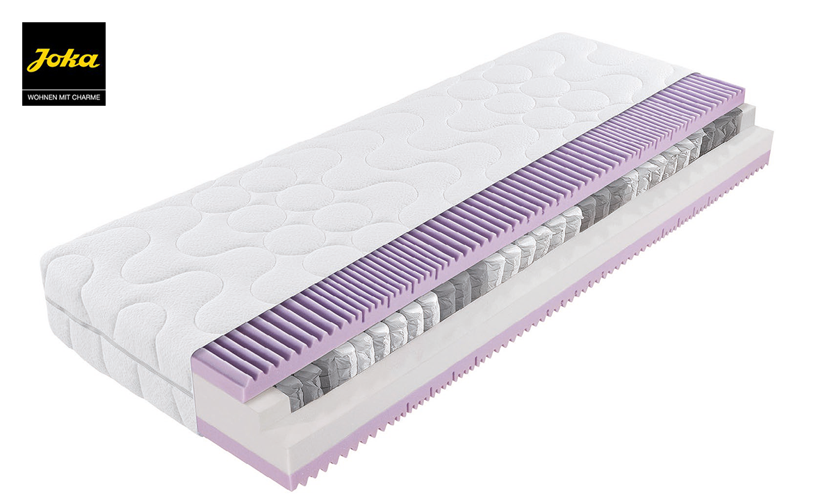 7-Zonen Tonnentaschenfederkern mit körperentlas-tender Schulter- und Beckenzone. Die körpergerechte Kaltschaumauflage mit Wellenkonturschnitt sorgt für ein ausgewogenes Microklima.