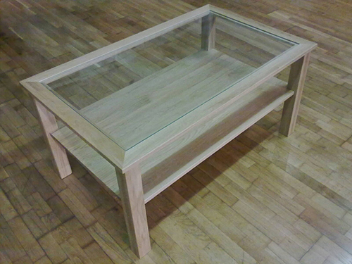 Couchtisch Eiche massiv natur ca. 115x70x55cm, mit Klarglasplatte.