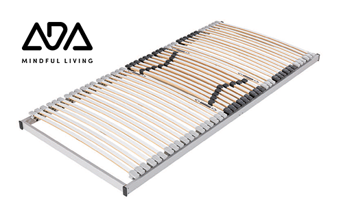 Ausführung starr mit 28 mehrfach verleimte, verzugsfreie Federholzleisten in beweglichen Doppelkappen flexibel im Schichtholzrahmen gelagert mit Mittelzonenverstärkung.
