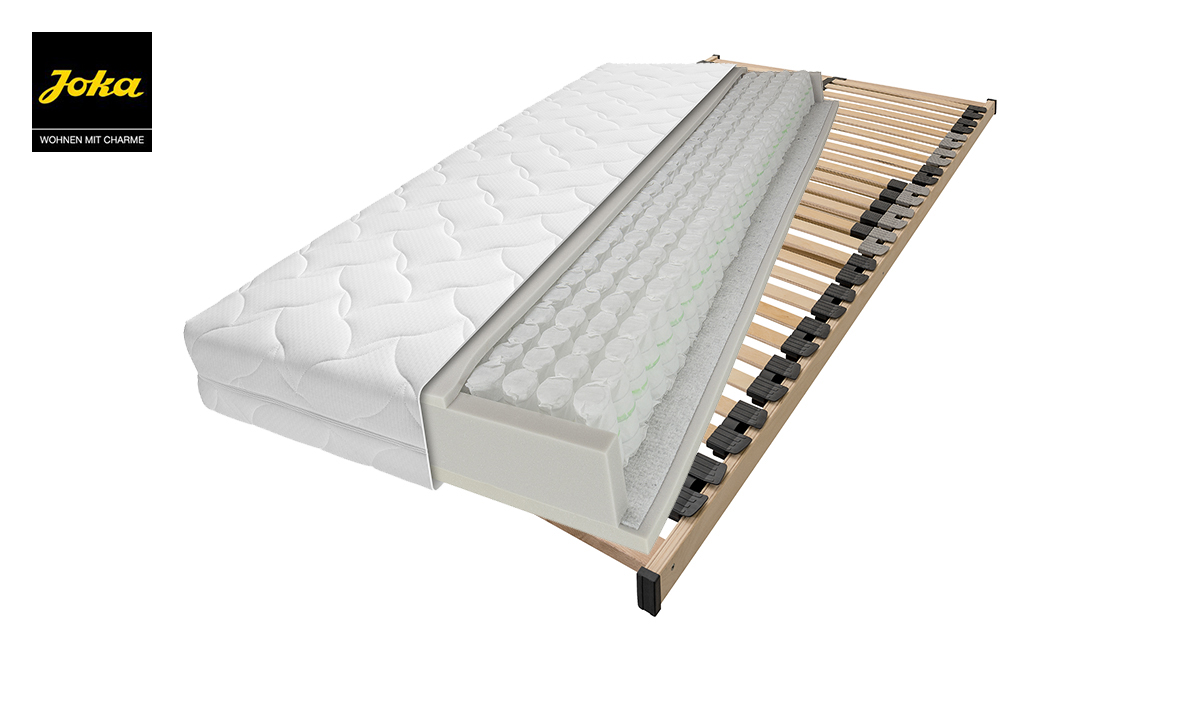 Lattenrost mit beweglichen Doppelkappen, Mittelzonenverstärkung mit Härteregulierung.